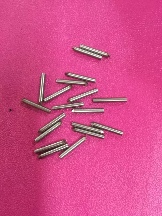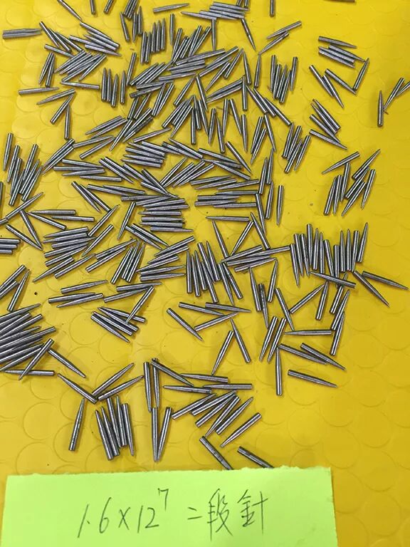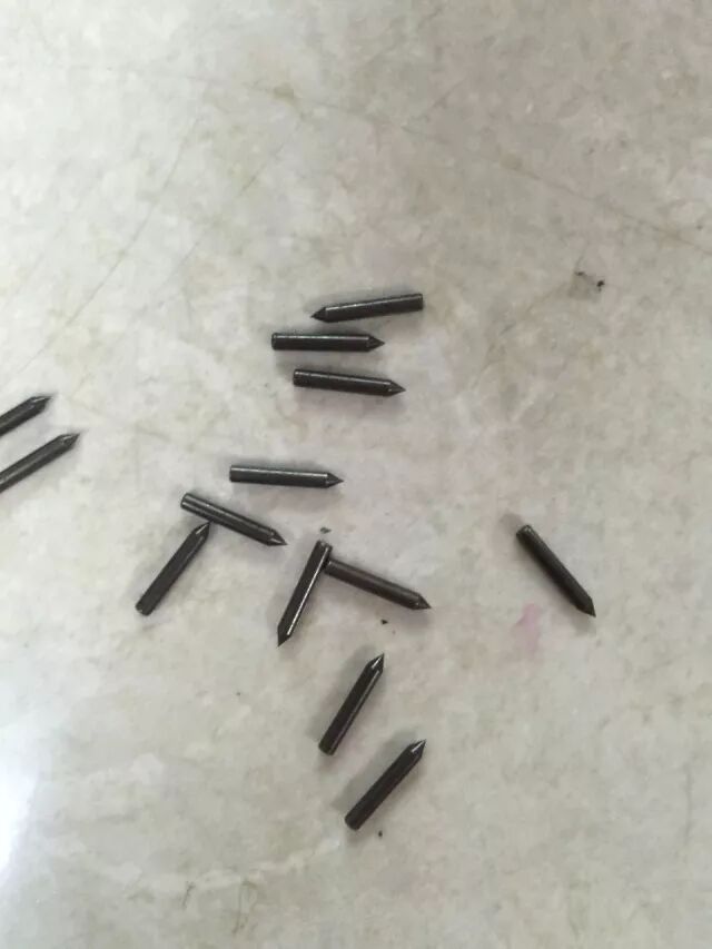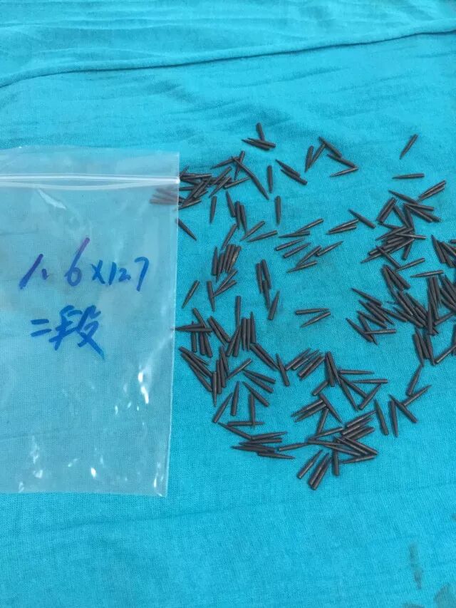 将经过化验合格后的原材料,经过拉丝机拉制成所需的直径尺寸,而后切割成一根根定长的棒状冲针胚料。